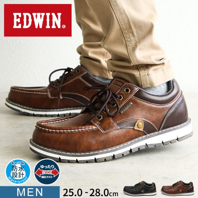 エドウィン スニーカー メンズ 防水 防滑 ローカット 履きやすい 疲れにくい おしゃれ カジュアル 大人 男性 通勤 通学 タウンユース 普段履き カジュアルシューズ ローカットスニーカー レインシューズ 紐靴 運動靴 靴 シューズ 黒 ブラック ダークブラウン EDWIN 7984