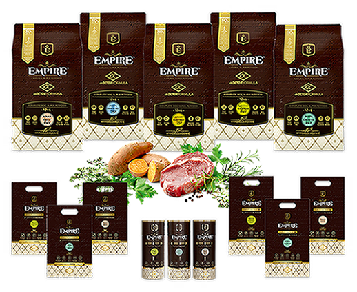 ■製品について 動物栄養学における最新の研究と最高品質の天然成分、 それらを支える最適な技術の組み合わせが「EMPIRE」の礎になっています。 食事で免疫システムを強化しながら、体が毒素を浄化するのをお手伝いする。 それこそ食事が担う重要な責任であり、EMPIREが目指す本来の食事の姿です。