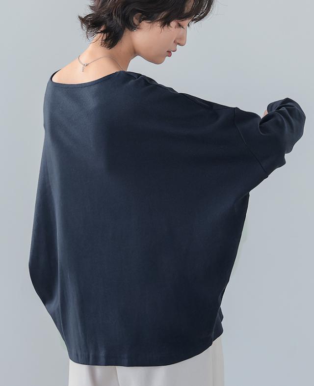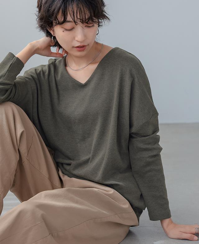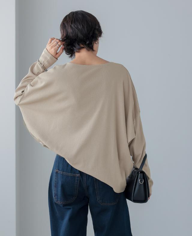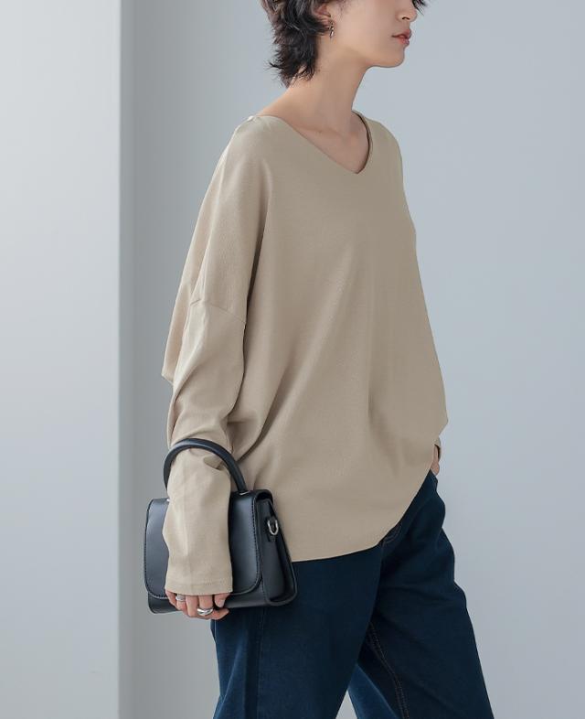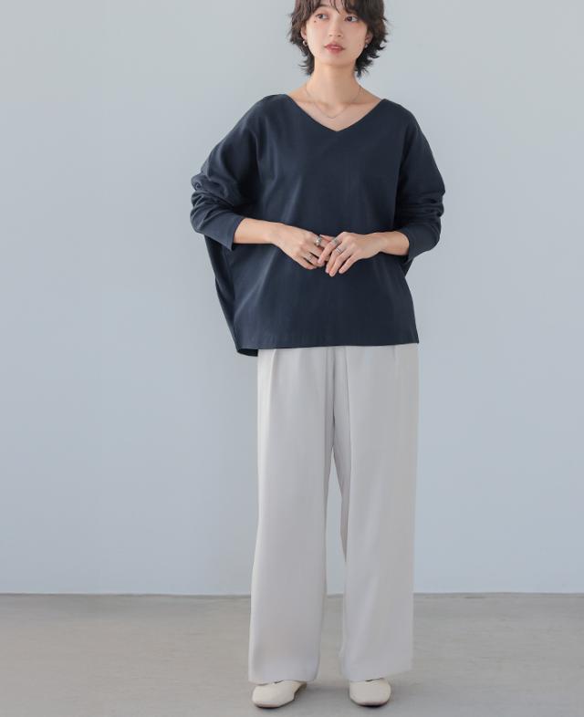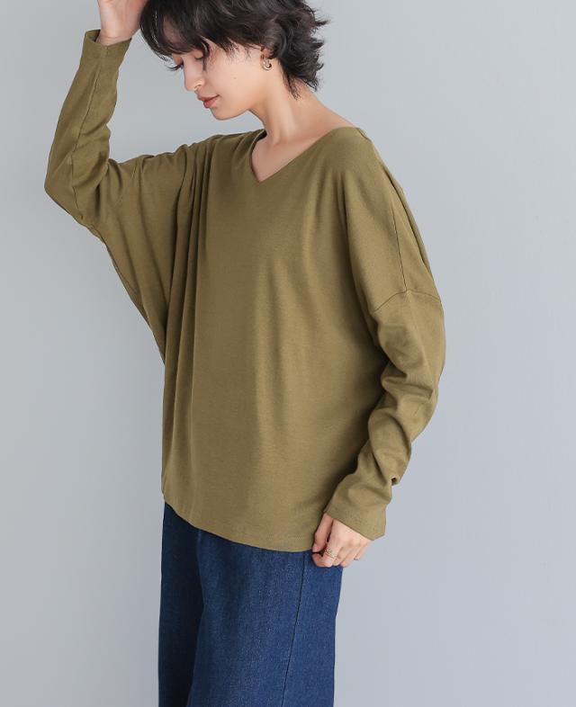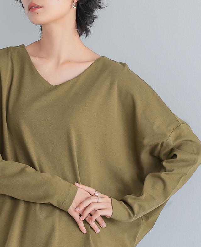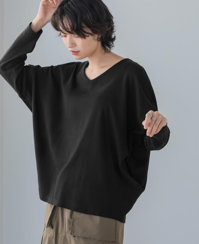 ドルマンスリーブVネックTシャツ レディース トップス Tシャツ ロンT 長袖 Vネック 無地 カットソー 綿100% ドルマン 体型カバー 秋冬 秋新作【メール便1点まで】[M便 1/1]