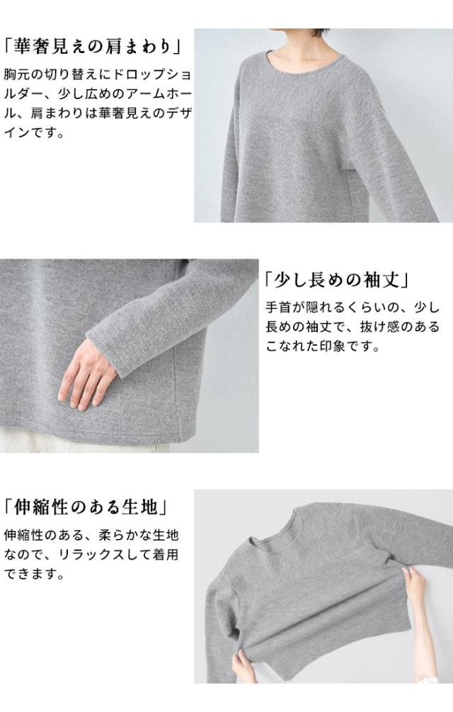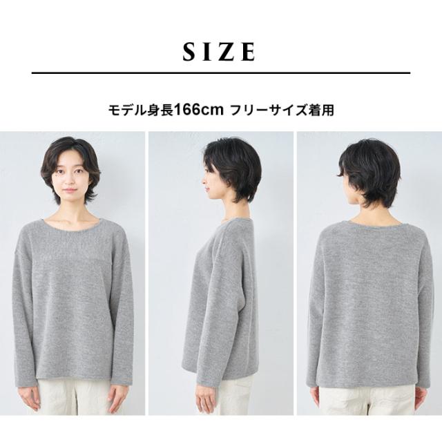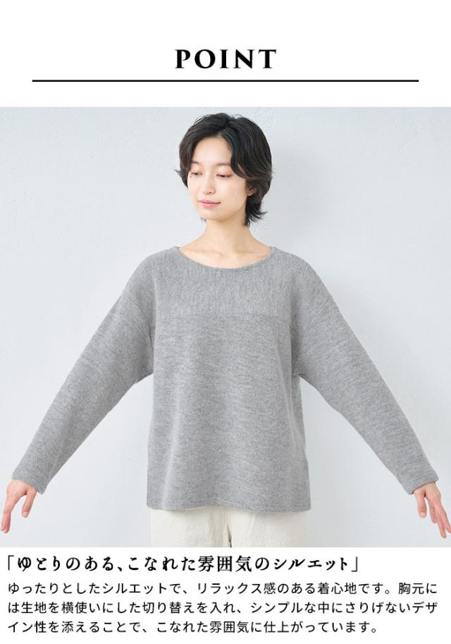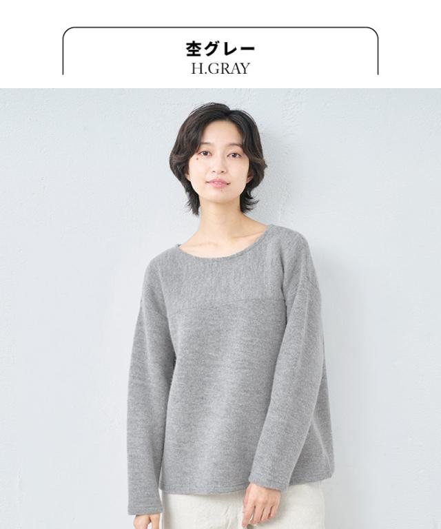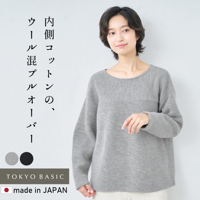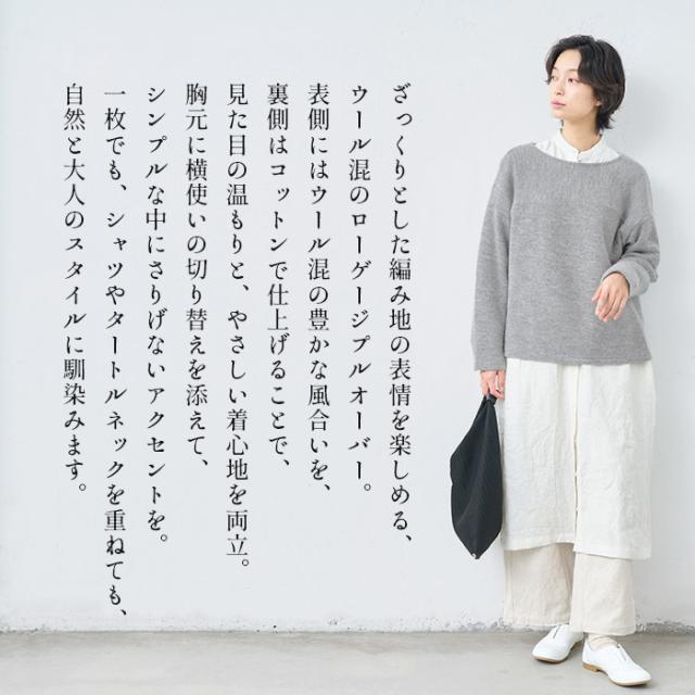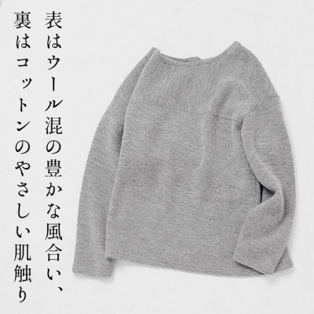 ウールコットンダブルフェイス プルオーバー / 日本製 40代 50代 60代 30代 女性 裏コットン カジュアル 大人可愛い 春 冬 秋 暖かい ゆったり ローゲージ ニット 秋冬 重ね着 ナチュラル シンプル グレー 黒 レディース 長袖 トップス ウール混
