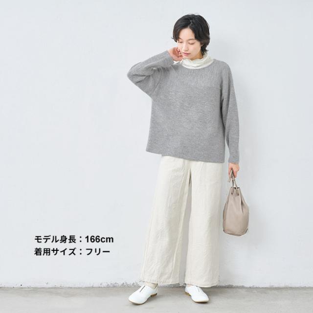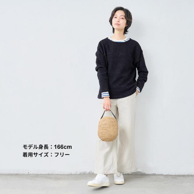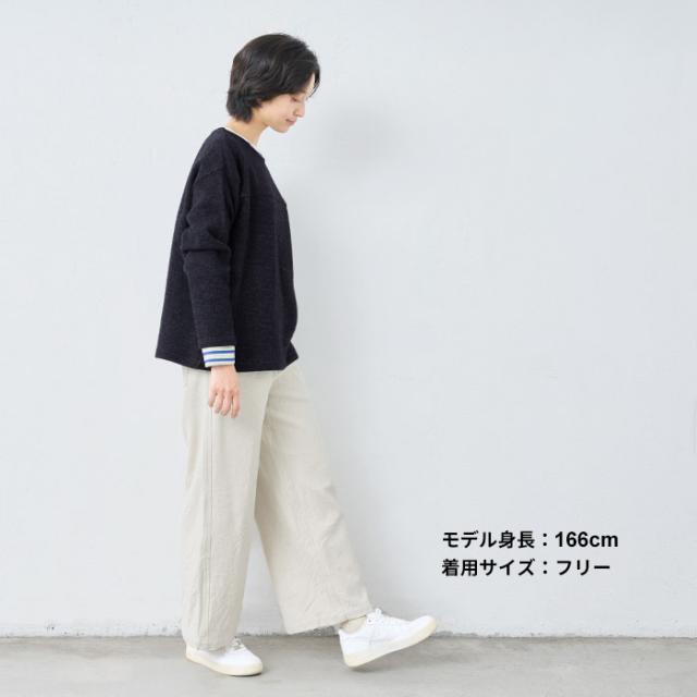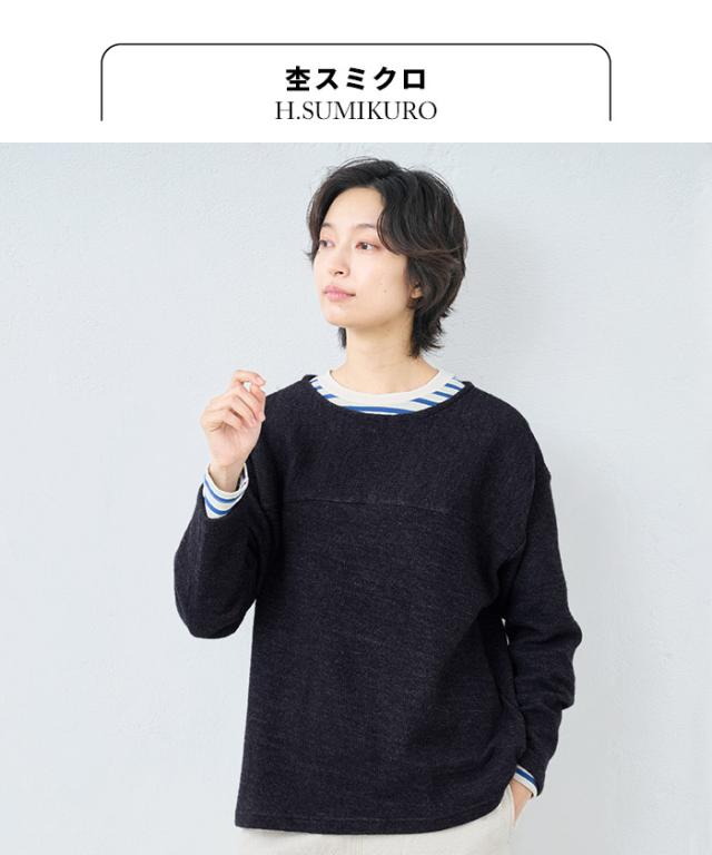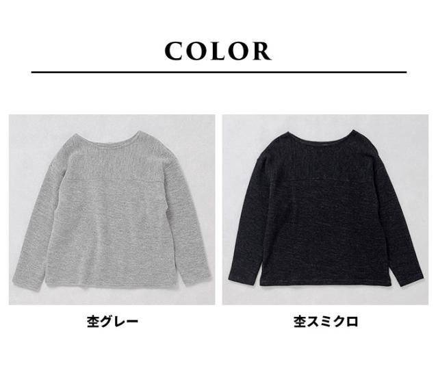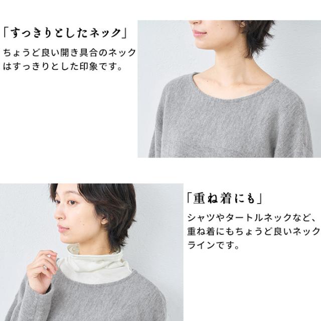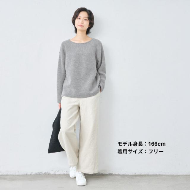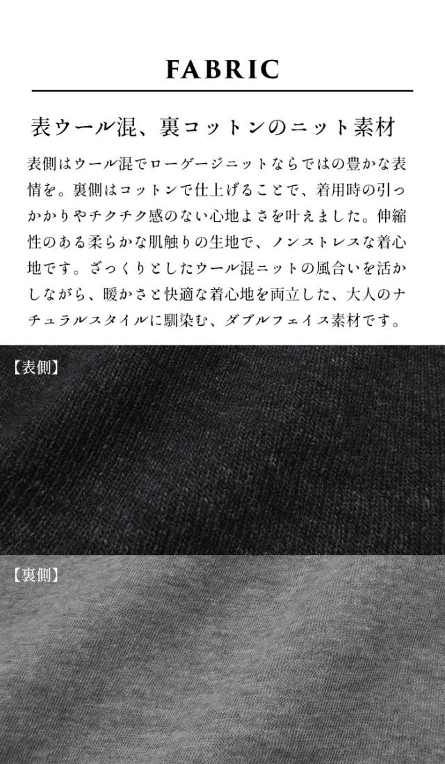 ウールコットンダブルフェイス プルオーバー / 日本製 40代 50代 60代 30代 女性 裏コットン カジュアル 大人可愛い 春 冬 秋 暖かい ゆったり ローゲージ ニット 秋冬 重ね着 ナチュラル シンプル グレー 黒 レディース 長袖 トップス ウール混