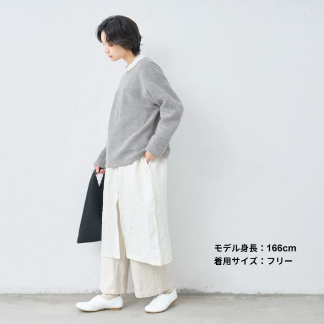 特徴 ざっくりとした編み地の表情を楽しめる、ウール混のローゲージプルオーバー。表側にはウール混の豊かな風合いを、裏側はコットンで仕上げることで、見た目の温もりと、やさしい着心地を両立。胸元に横使いの切り替えを添えて、シンプルな中にさりげないアクセントを。一枚でも、シャツやタートルネックを重ねても、自然と大人のスタイルに馴染みます。