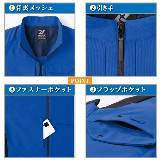 ◇機能:背裏メッシュ・引き手・ファスナーポケット・フラップポケット・名札ループ・袖ペン差し・反射パイピング・脇下トリカット・サイクルカット