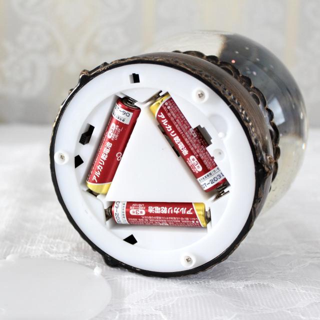 スイッチを入れるとLEDライトが点灯し中のラメが舞います。