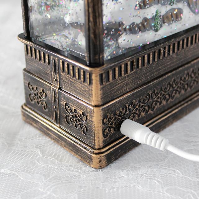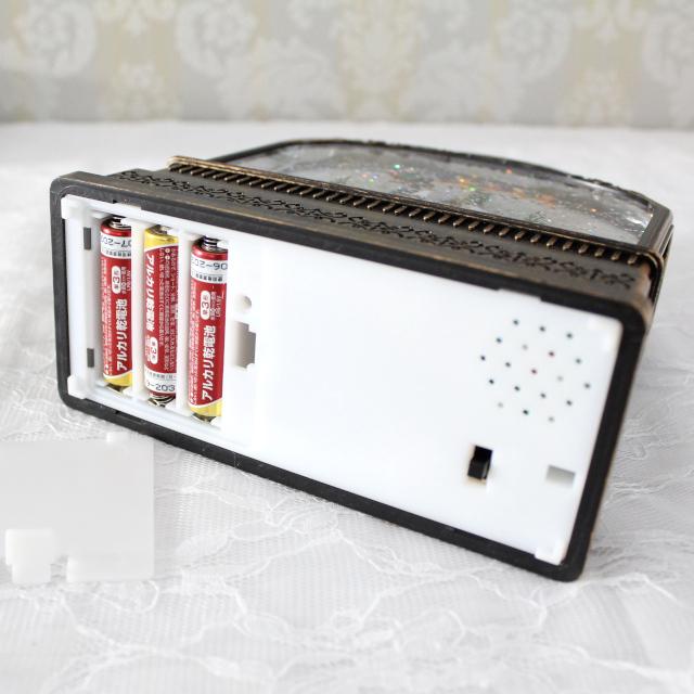 スイッチを入れると中のラメが舞い、8曲のクリスマスソングがメドレーで流れます。