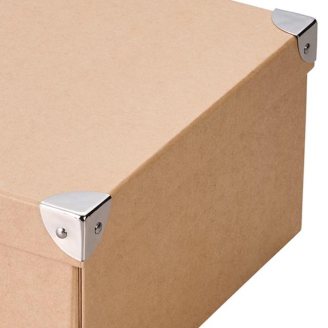 角には補強金具を使用し、強度を高めています。つぶれにくい仕様で安心です。