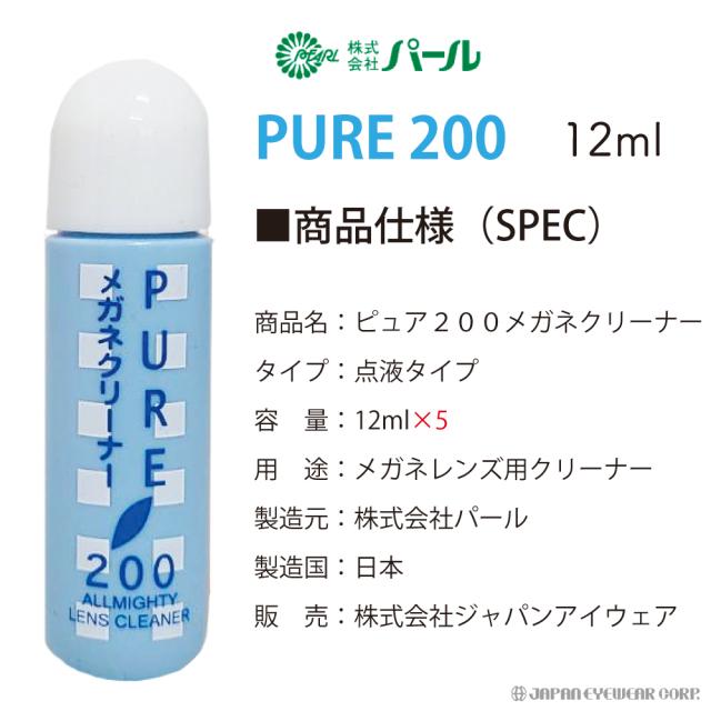 メガネ クリーナー 液 めがね 眼鏡 マスク 日本製 5個 セット メガネクリーナー パール ピュア200 点液タイプ 5本セット PURE 200 PEARL レンズ 汚れ 眼鏡クリーナー レンズクリーナー 汚れ落とし 携帯 よごれ