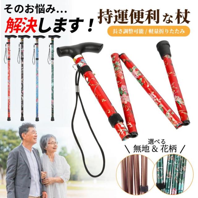 杖 折りたたみ 軽量 ステッキ 介護 つえ おしゃれ 女性用 プレゼント リハビリ 男性用 高齢者 調整 コンパクト 持ち運び 花柄 シンプル メンズ レディース
