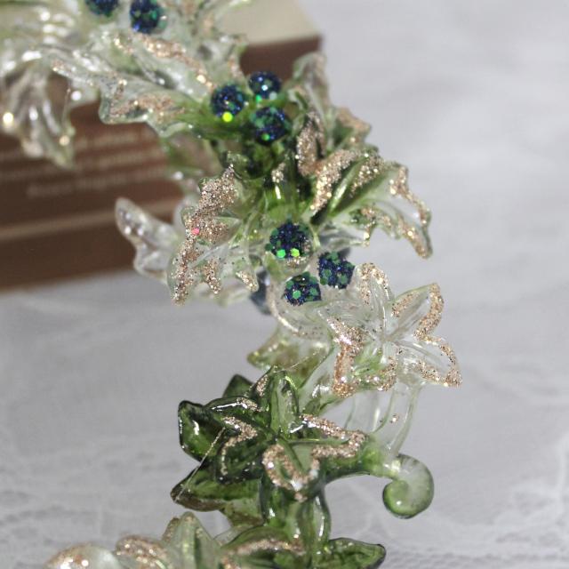 クリアグリーンのヒイラギにブルー・ピンクの実のアクセントをつけた、おしゃれなミニリースのオーナメント。 |