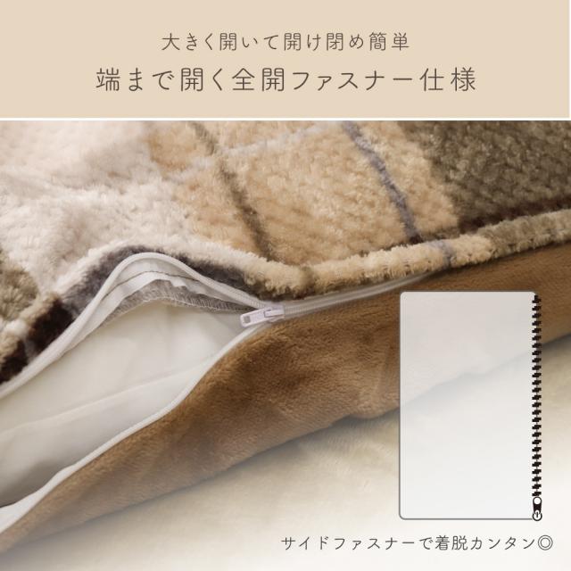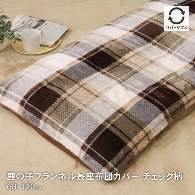 鹿の子フランネルあったか長座布団カバー 68×120cm 裏面無地 リバーシブル チェック柄
