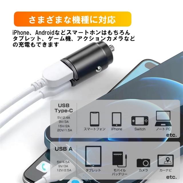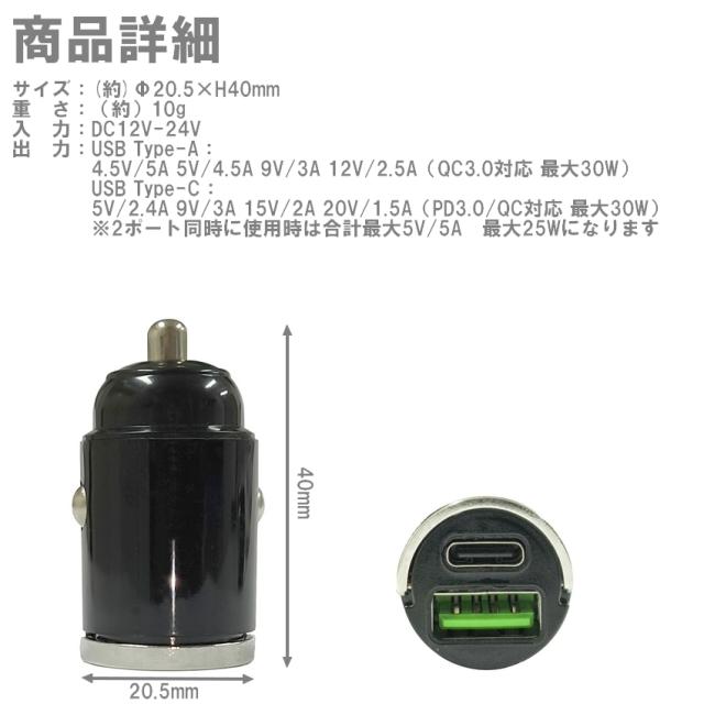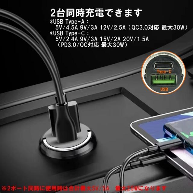 30W シガーソケット USB 充電器 Type-C 2ポート 超小型 iPhone 16 タイプc 急速充電器 PD QC3.0 30W カーチャージャー シガーソケット USB 急速充電 車載 車 充電器 USB コンパクト 12V 車載充電器 高速充電 シガープラグ 24V対応 変換 andoroid スマホ