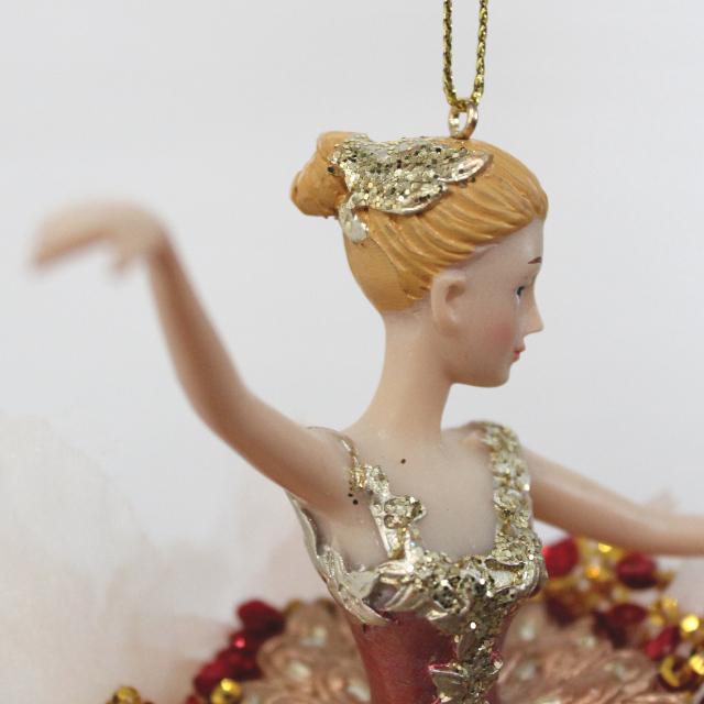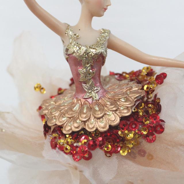 お花のように華やかなチュチュを着たバレリーナのオーナメント。 |