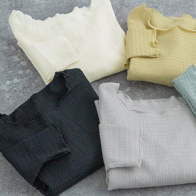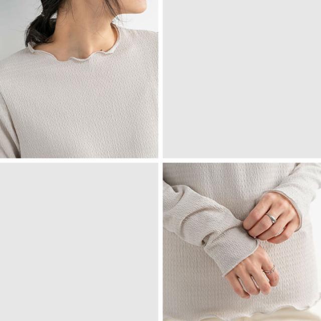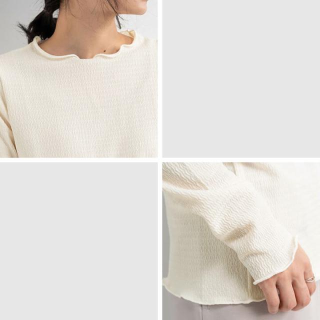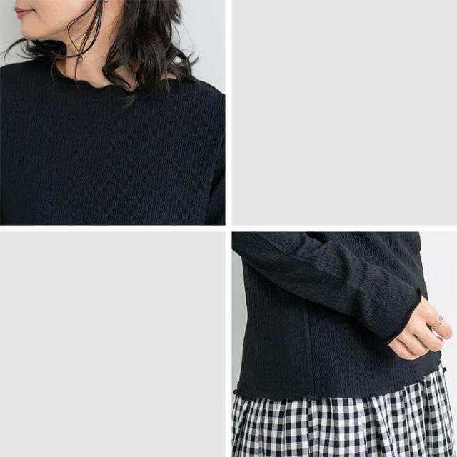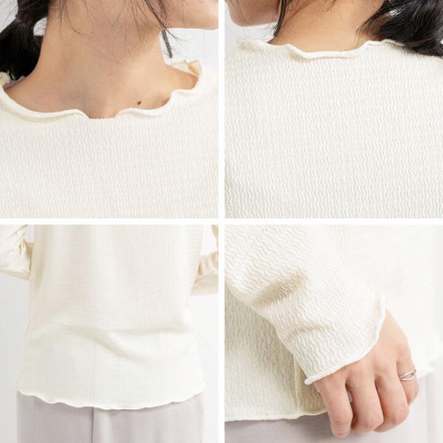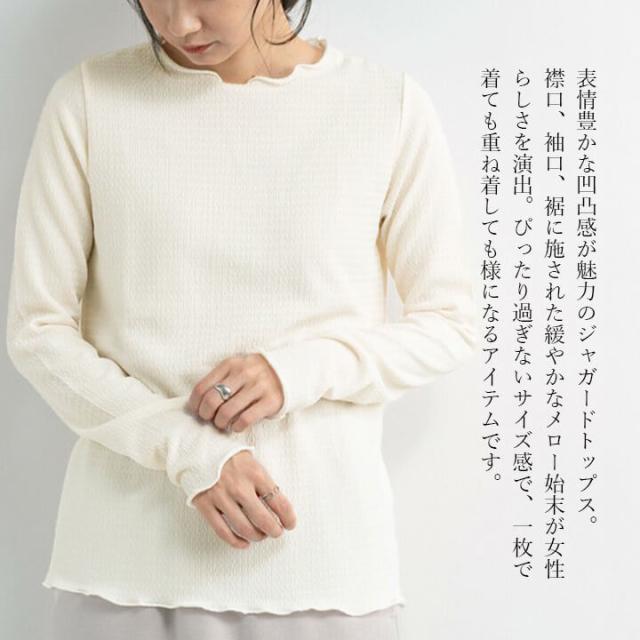ジャガードトップス トップス レディース カジュアル 凹凸感 春 秋 冬 女性 可愛い ゆったり 快適 デイリー コーデ 大人 上品 シンプル ラフ きれいめ 二の腕カバー 長袖 抜け感 重ね着 レイヤード メロー始末 ポリエステル ポリウレタン 20代 30