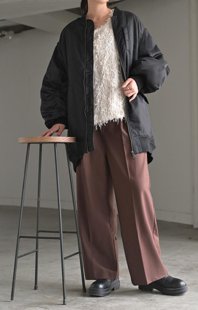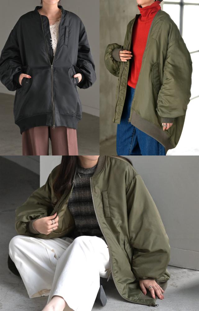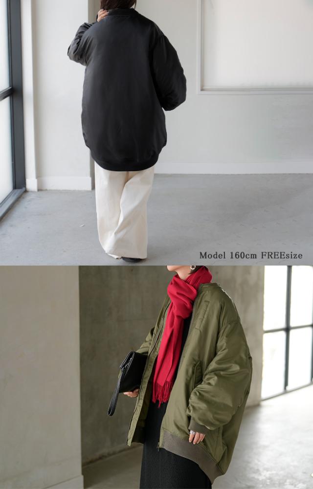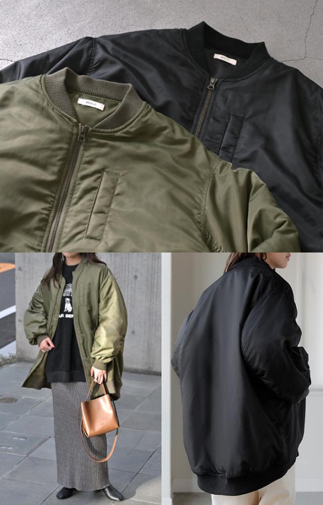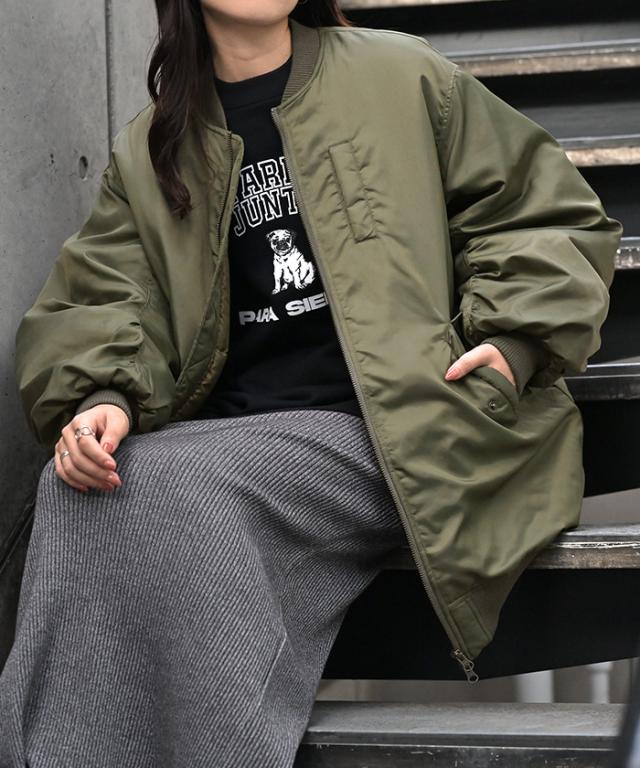 トレンド感がありながらシンプルで合わせやすいロングMA-1ブルゾンです。