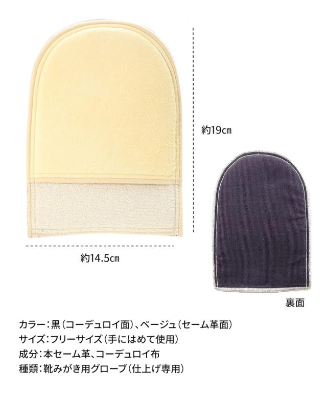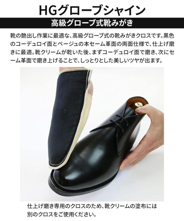 靴磨き グローブ式 HGグローブシャイン セーム革 コーデュロイ 艶出し 高級靴みがき 靴仕上げ用クロス ツヤ出し 靴クリーム後の磨き 革靴ケア 靴メンテナンス用品 靴磨きグッズ 日本製 仕上げ磨き専用 クロス 靴の手入れ 黒 ベージュ