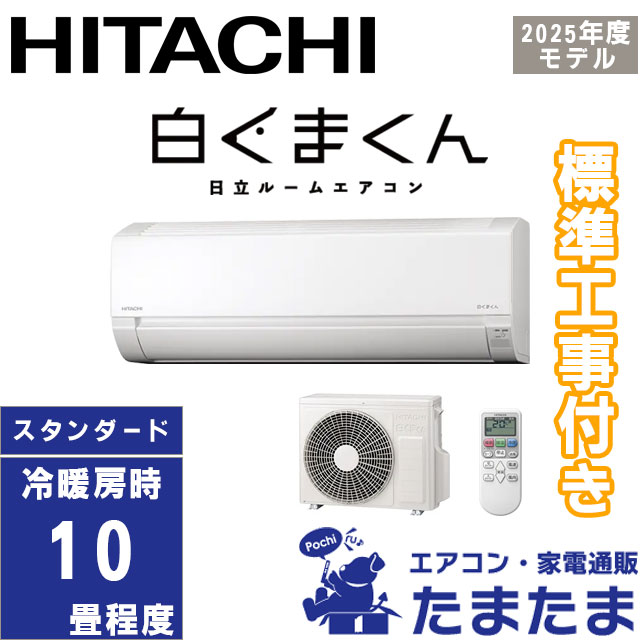 エアコン 標準工事費込み 10畳用 日立 白くまくん RAS-AJ2825S-W 2025年モデル 単相100V
