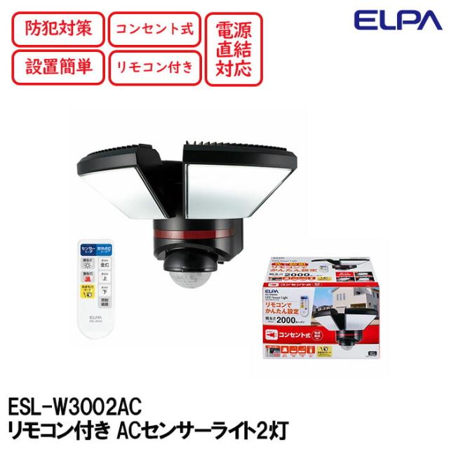 エルパ ESL-W3002AC リモコン付き ACセンサーライト2灯 防水 赤外線受動式 防犯対策 コンセント式 直結式対応 設置簡単