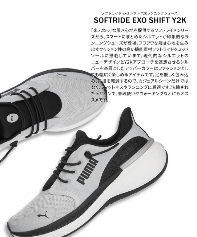 プーマ ランニングシューズ メンズ レディース 運動靴 ウォーキングシューズ スニーカー スポーツ フィットネス トレーニング 男性用 女性用 ローカット puma SOFTRIDE EXO SHIFT Y2K グレー 312811