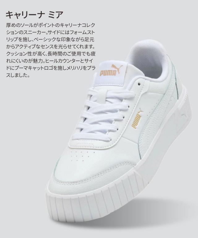 プーマ スニーカー レディース 厚底 人気 ウィメンズ キャリーナ ローカット コートスニーカー 靴 カジュアルシューズ ダッドスニーカー おしゃれ 美脚 旅行 通学 通学 紐 puma キャリーナ ミア 白 ホワイト 402637