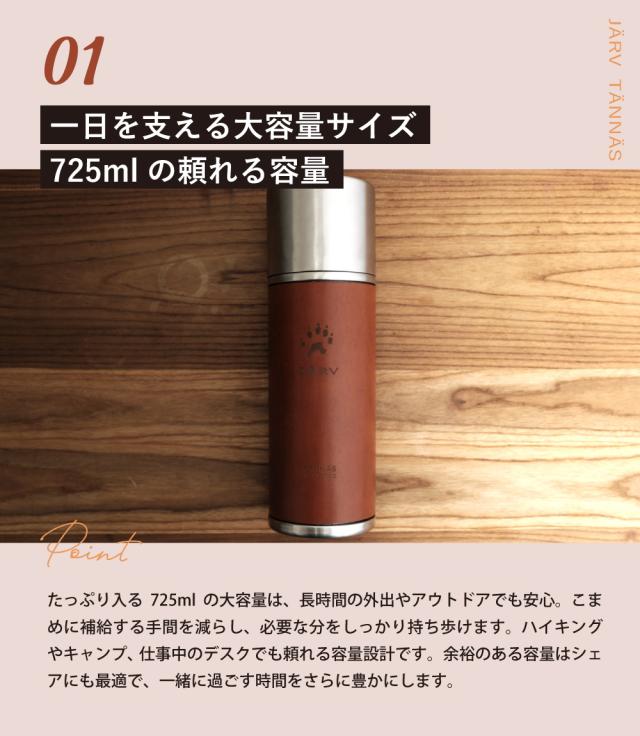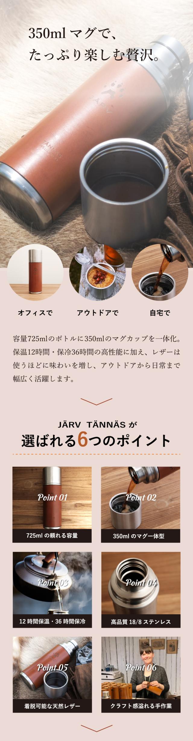 ヤールヴ テンネス アンバー JARV | 725ml ステンレス 水筒 マグカップ一体型 レザー付き 真空断熱ボトル 保温保冷 大容量 アウトドア ボトル キャンプ 登山 ハイキング ピクニック スポーツ ドライブ オフィス 自宅 北欧デザイン サステナブル 高級 ギフト プレゼント