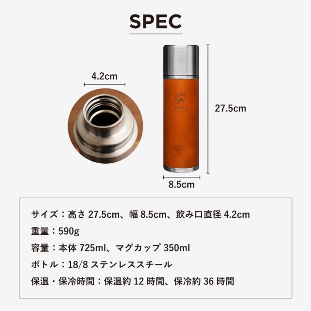 ステンレスボトル 水筒 真空断熱 マグカップ付きボトル レザー付きボトル 保温 保冷 大容量 725ml 350mlマグ 北欧デザイン サステナブル おしゃれ 高級感 上質 ギフト プレゼント 贈り物 メンズ レディース アウトドア キャンプ 登山 ハイキング 日常使い インテリア