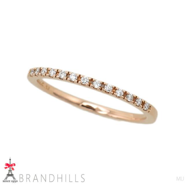 繊細なストレートラインにダイヤモンドが輝くリング。ピンクゴールドの柔らかな輝きが女性らしい手元を演出します。