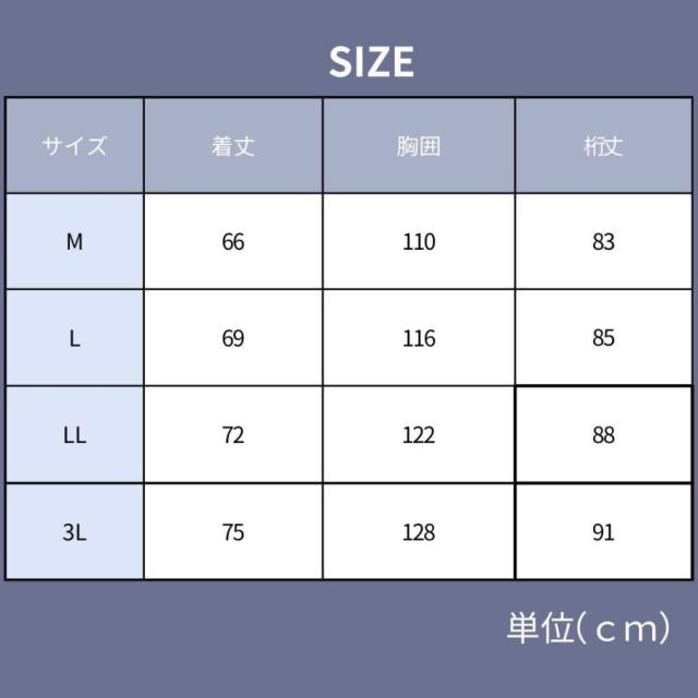 3L:着丈 75/胸囲 128/裄丈 91