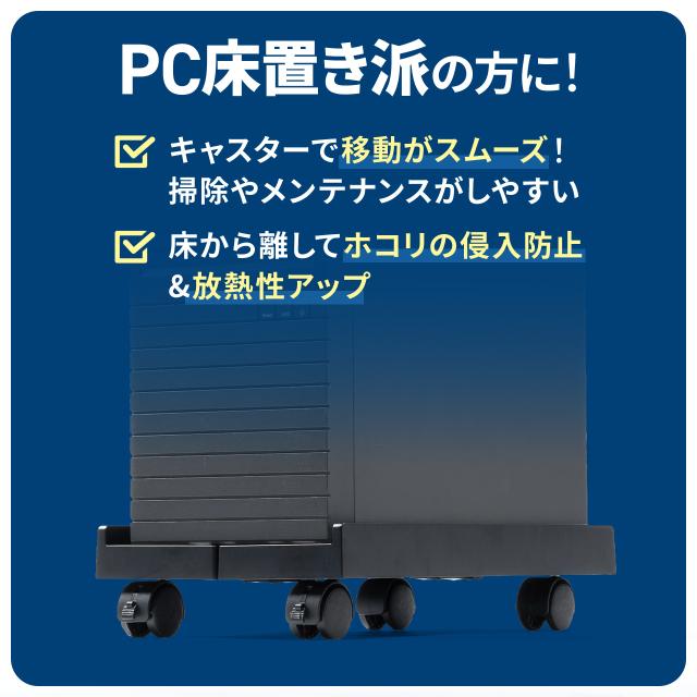 CPUスタンド デスクトップ用 耐荷重30kg ゲーミングPC パソコンラック パソコンスタンド キャスター付き ほこり対策 無段階調整[100-CPU004]
