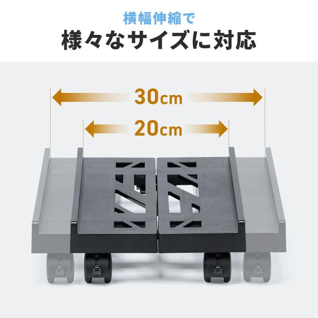 ●横幅20〜30cmのパソコン本体の設置に対応したPCスタンドです。●横幅は無段階で調整できるので、機器に合わせて設置ができます。