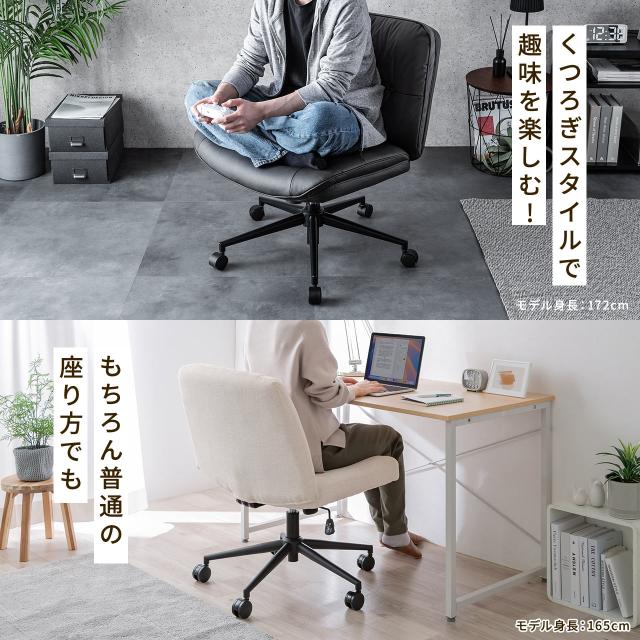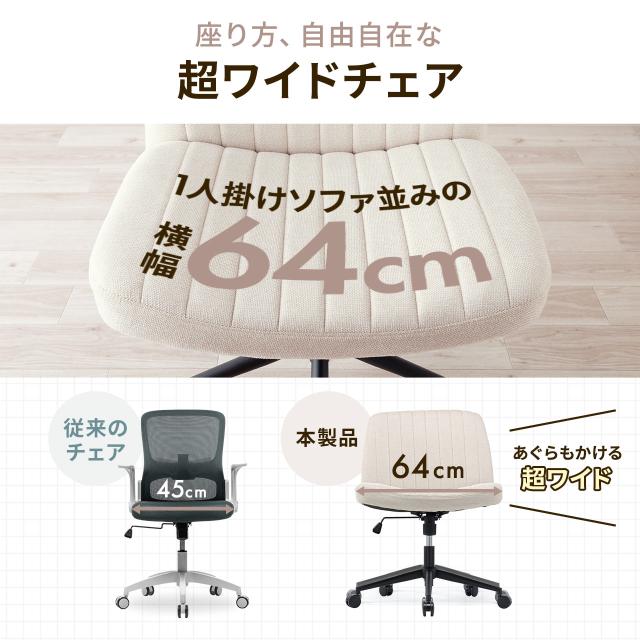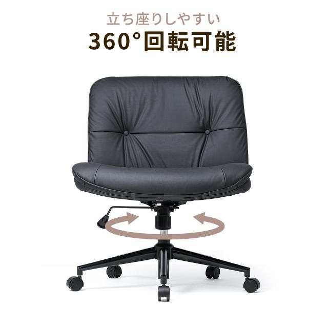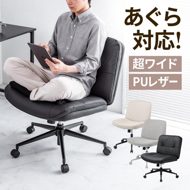 あぐら椅子 胡坐いす ワイドチェア ソファチェア 幅64cm 幅広座面 ロッキング キャスター ガス圧昇降 超ワイド設計 PUレザー[150-SNCH54LBK]