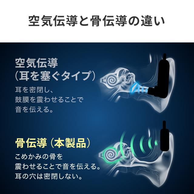 ●付属の耳栓を取り付けることで、骨伝導による音がより聞こえやすくなります。周囲の環境に注意した上でご使用ください。