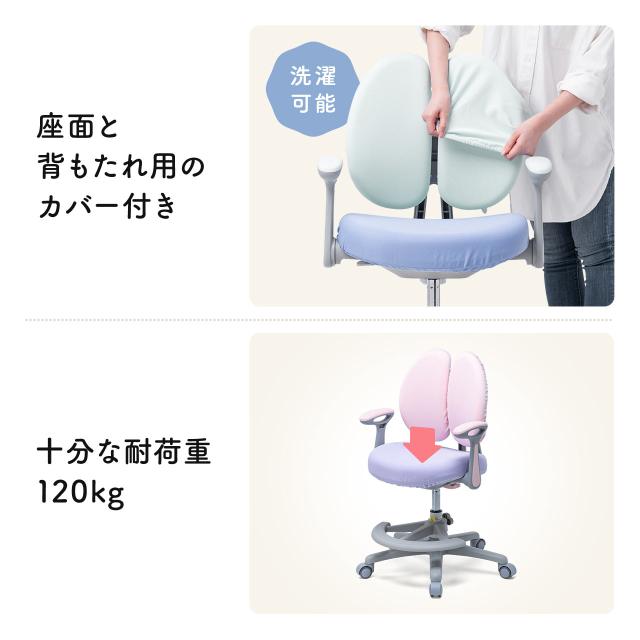 学習チェア キッズチェア 学習椅子 学習机用チェア 子供用学習チェア 姿勢サポートチェア 成長チェア ダブルバック ブルー ピンク[150-SNCK64]