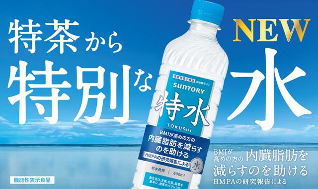 機能性関与成分HMPAの働きにより、内臓脂肪を減らすのを助けることが期待されており、健康を意識するかたの新しい選択肢として誕生しました。毎日飲む水を、そのまま健康サポートの一杯に置き換えることができることが最大の魅力です。仕事中のデスクワークの合間や、食事の際、あるいは運動中の水分補給として、さまざまな生活シーンで無理なく続けられることを目指しました。パッケージデザインには“特”ブランドとしての信頼感と、水ならではの清涼感をプラスしています。