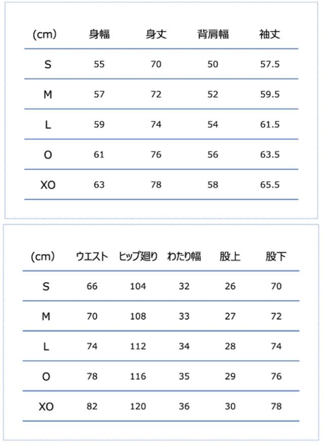 サイズ:身長 / チェスト / ウエスト / ヒップ