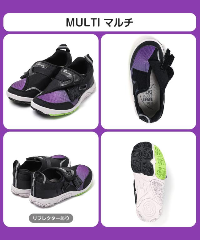 イフミー 子供靴 スニーカー キッズ 男の子 女の子 マジックテープ ベルクロ かわいい 通学 通園 小学校 保育園 幼稚園 こども 子ども スポーツ 走る かけっこ 鬼ごっこ 運動靴 靴 シューズ 黒 ブラック パープル マルチ IFME Tag hunter ワンタッチスニーカー 20-5807