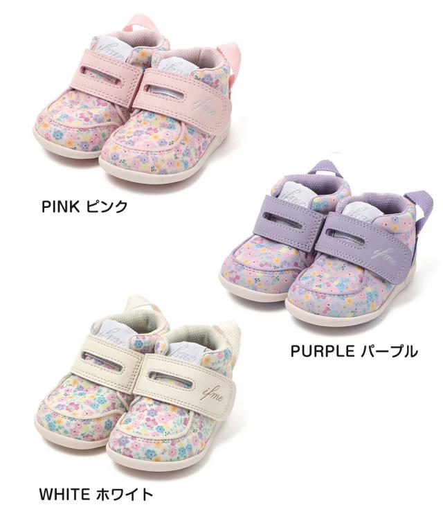 イフミー 子供靴 スニーカー 男の子 女の子 マジックテープ ベルクロ かわいい 保育園 幼稚園 通園 赤ちゃん ベビー ファーストシューズ セカンドシューズ ベビーシューズ 靴 シューズ 白 ホワイト ピンク パープル IFME CALIN 花柄プリントファーストシューズ 20-5818