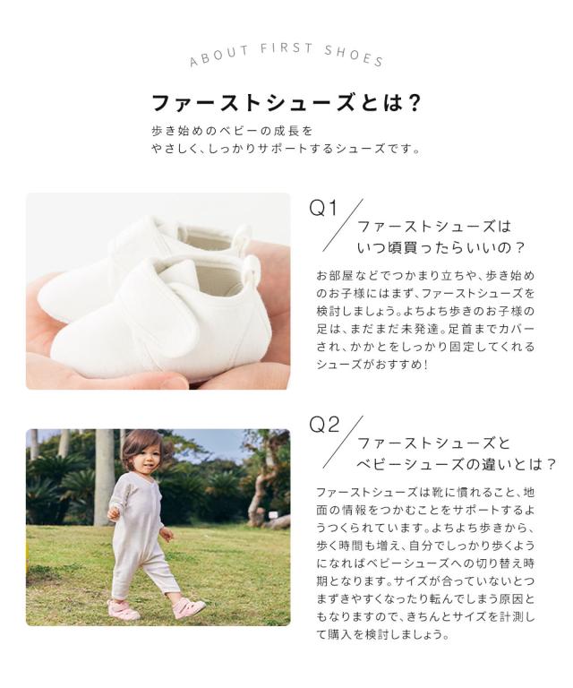 ファーストシューズは柔らかく、履き口も大きく開く機能性にも長けたアイテムです。