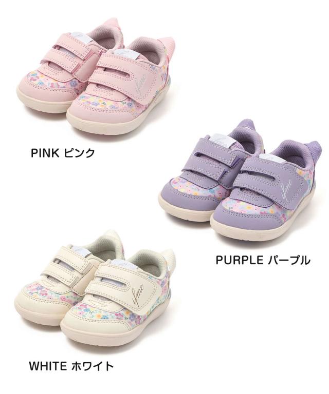 イフミー 子供靴 スニーカー 男の子 女の子 マジックテープ ベルクロ かわいい 保育園 幼稚園 通園 赤ちゃん ベビー ファーストシューズ セカンドシューズ ベビーシューズ 靴 シューズ 白 ホワイト ピンク パープル IFME CALIN 花柄プリントファーストシューズ 20-5822