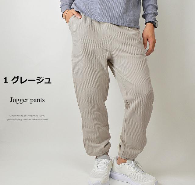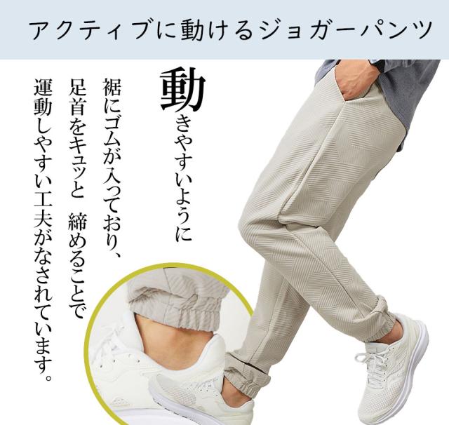 ジョガーパンツ メンズ ストレッチ ジャガード 幾何学柄 ストレッチパンツ 裾ゴム ジョガー スポーツ 運動 速乾 秋 冬 春 ウエストゴム ズボン イージーパンツ スポーツウェア トレーニングウェア ルームパンツ シンプル 無地 セットアップ対応(上下別売り) 新作