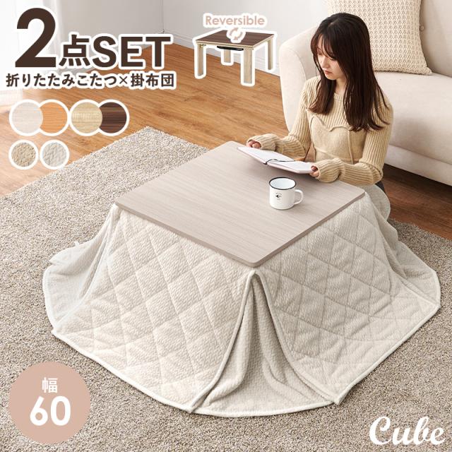 こたつセット こたつ布団 正方形 こたつ こたつテーブル おしゃれ こたつ布団セット 折りたたみ 1人用 幅60cm キューブ ポカ コタツ かわいい 省スペース コンパクト 60 フランネル