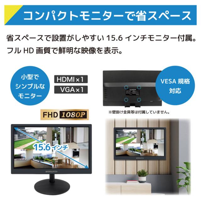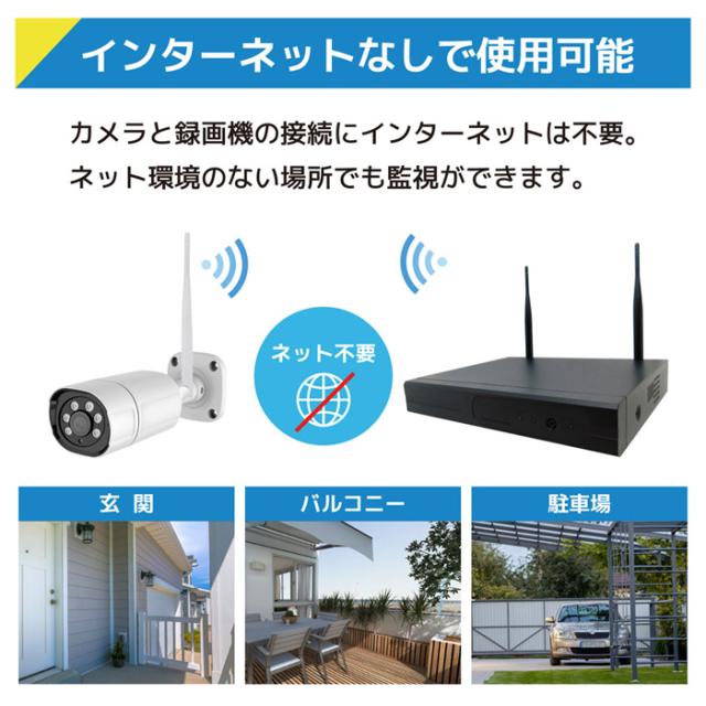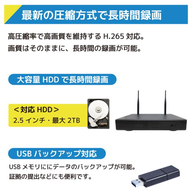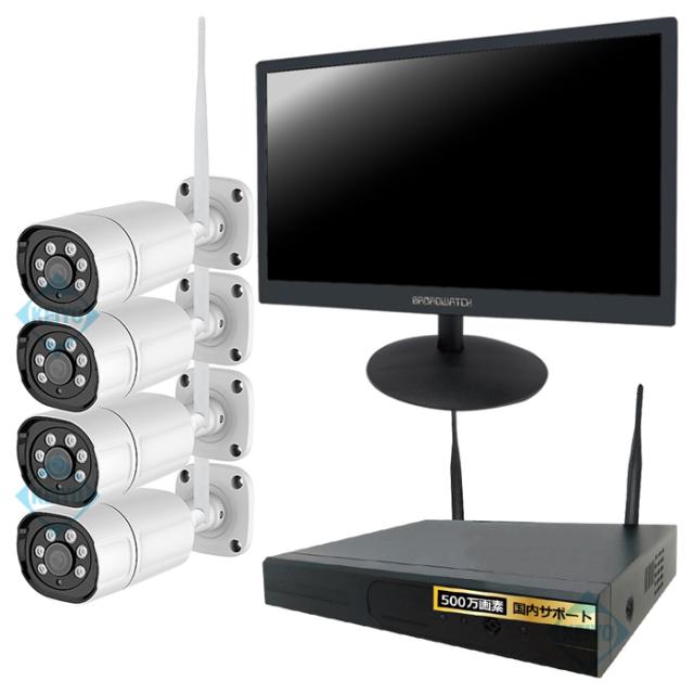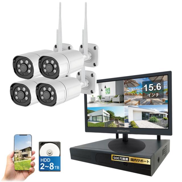 SEC-W-G4CH-16L-2T | ワイヤレス500万画素カメラ4台+LCD16インチ録画機分離型セット(HDD 2〜8TB)【防犯カメラ】【監視カメラ】【セキュリティーカメラ】【無線】【ワイヤレス】【工事不要】