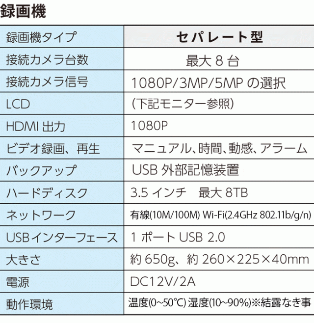 LCD16インチ録画機分離型セット(HDD 2〜8TB)