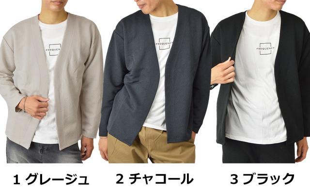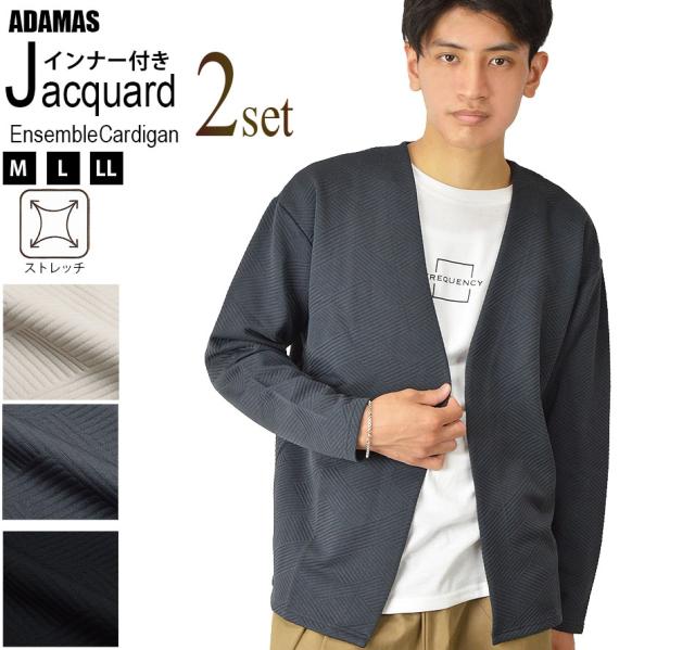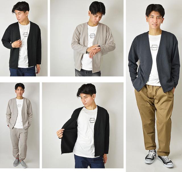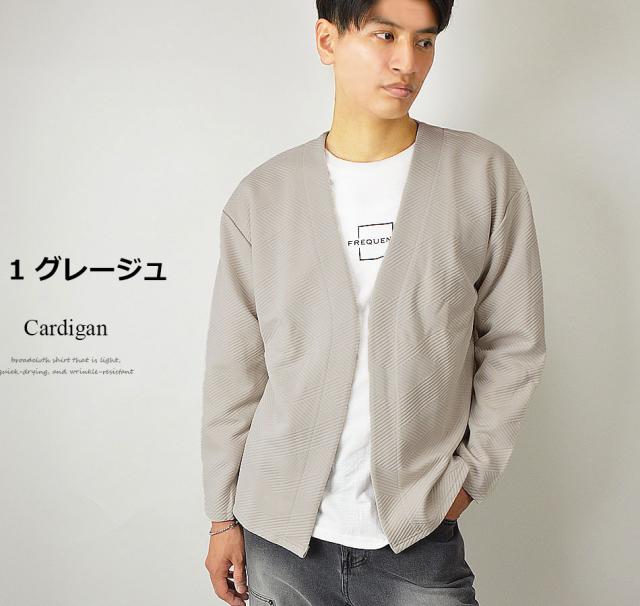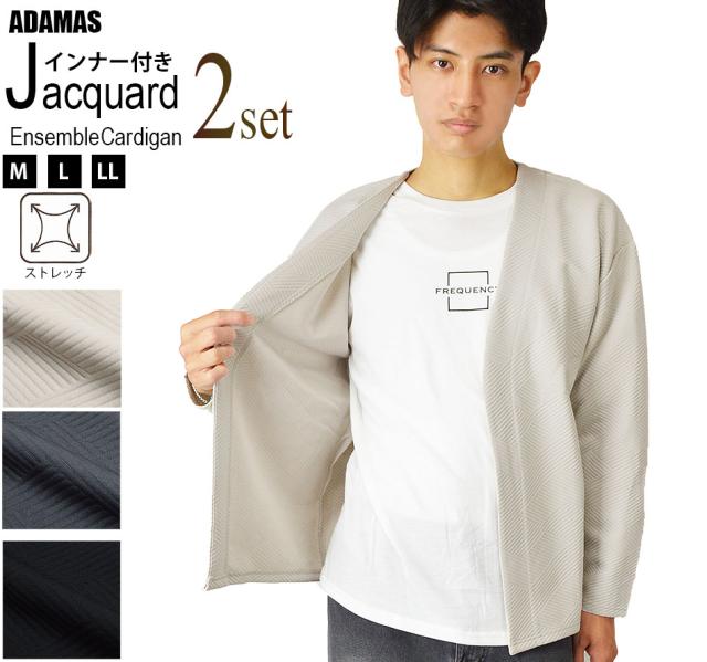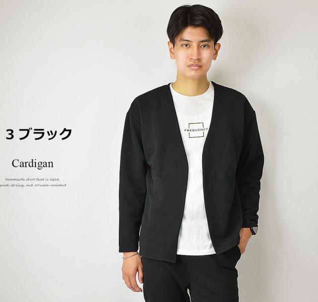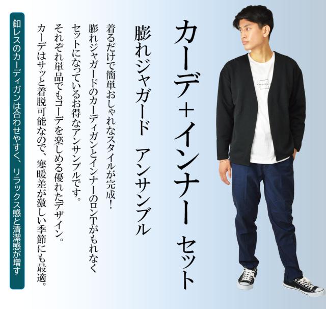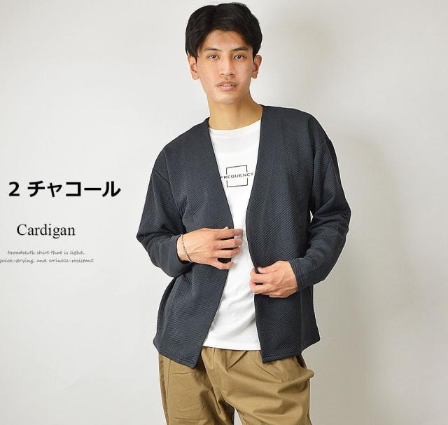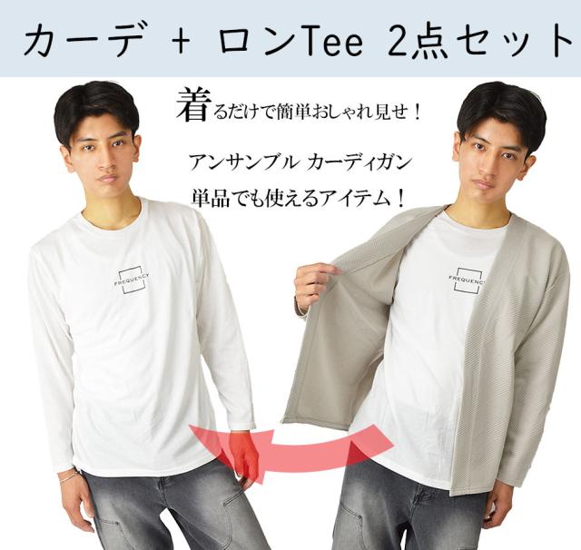 送料無料 カーディガン メンズ 秋 冬 春 アンサンブル カーデガン+長袖Tシャツ(ロンT) 2点セット ボタンレス ボタンなし ジャガード 生地 着流し 速乾 洗える カーデ 長袖 ゆったり 羽織り シンプル 秋冬 春 おしゃれ ゴルフ スポーツ ゴルフウェア 新作
