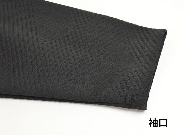 素材:ポリエステル98% ポリウレタン2%(幾何学柄 膨れジャガード)/ インナー(ロンT):ポリエステル65% 綿35%(TC天竺)
