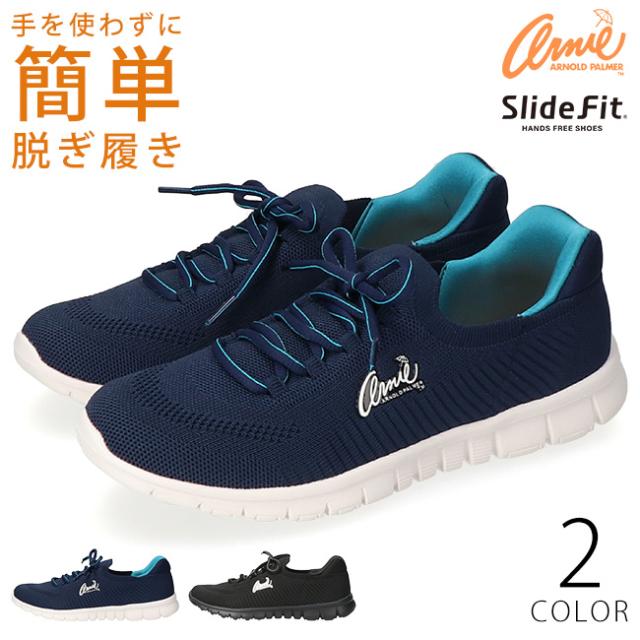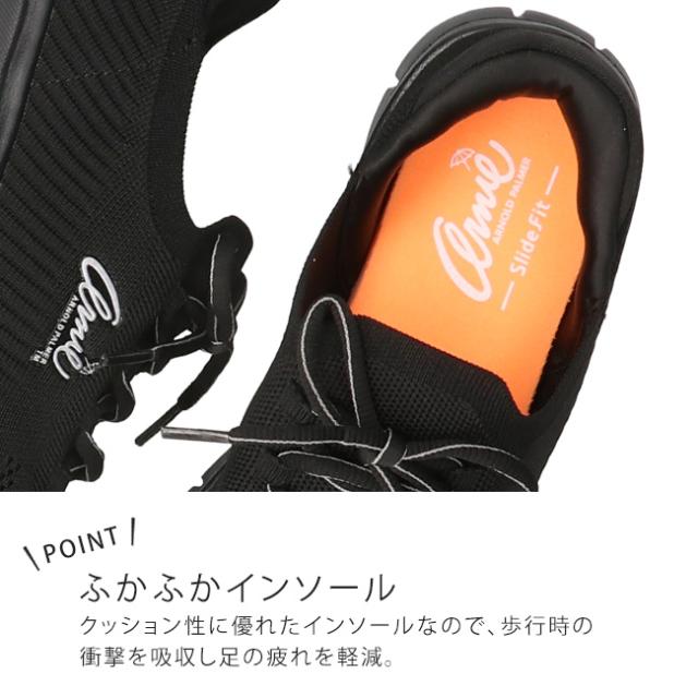 アーノルドパーマー スニーカー レディース 手を使わずに履ける 履きやすい 疲れにくい 歩きやすい 蒸れない 滑らない ハンズフリーシューズ 軽量 通気性 メッシュ ローカット おしゃれ メッシュスニーカー AN2205 黒 スライドフィット 運動靴 通勤 通学 シューズ 靴