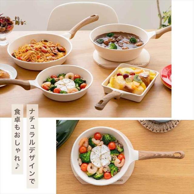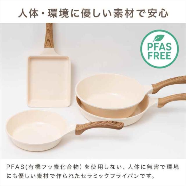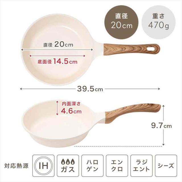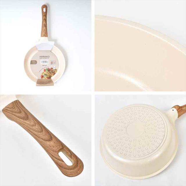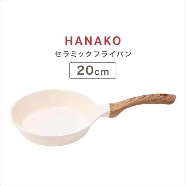 フライパン ih セラミック HANAKO ハナコ IH対応 20cm 浅型 HAS-20 小さめ ミニ おしゃれ かわいい 白 ホワイト くっつかない こびりつかない ガス 兼用 オムレツ 軽量 有害物質 含まない フッ素 不使用 PFAS フリー ナチュラル 木目調 調理器具 一人暮らし キッチン グッズ