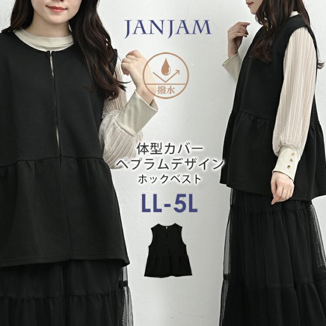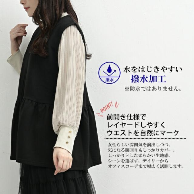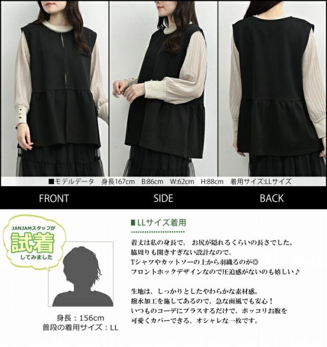 大きいサイズ レディース ペプラムベスト メール便送料無料 長袖 前開きホック ジレ ノースリーブ 撥水 羽織り トップス LL/3L/4L/5L ゆったりサイズ ぽっちゃり女子 プラスサイズ