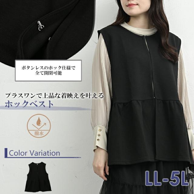 cla-saw-tp0631 【メール便対応】プラスワンで上品な着映えを叶えるペプラムホックベスト。 大きいサイズ レディース ノースリーブトップス ホックベスト ペプラムベスト カーディガン カーデガン 羽織り ミドル丈 ミディアム丈 無地 ノースリーブ 袖無し ノーカラー Uネック ラウンドネック ペプラム裾 前開きホック ギャザー ライトアウター 重ね着 春服 秋服 冬服 春物 秋物 冬物 春トップス 秋トップス 冬トップス 撥水加工 水を弾きやすい お尻すっぽり丈 お尻が隠れる着丈 ゆったり 大きめ 大人 フェミニン ナチュラル カジュアル 大人可愛い きれいめ かわいい 着こなし おしゃれ 定番 春コーデ 秋コーデ 冬コーデ ファッション 大きめ 女性 婦人用 ミセス 30代 40代 50代 2025 秋新作 春 秋 冬 黒 LL 3L 4L 5L 13号 15号 17号 19号 cla-saw-tp0631