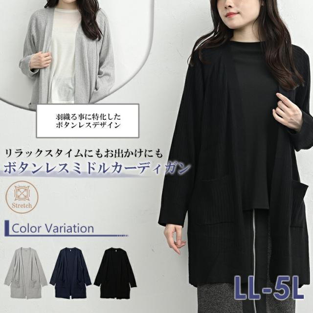 cla-saw-tp0634 季節の変わり目にも頼れるボタンレスミドルカーディガン。 大きいサイズ レディース 長袖トップス ニットカーディガン 長袖カーディガン トッパーカーディガン カーデガン 羽織り ミドル丈 ミディアム丈 無地 長袖 ロングスリーブ 10分袖 リブニット サイドスリット ポケット ライトアウター 重ね着 春服 秋服 冬服 春物 秋物 冬物 春トップス 秋トップス 冬トップス もちもちニット 洗濯機OK 洗えるニット ゆったり 大きめ 体型カバー 大人 オフィスカジュアル フェミニン ナチュラル 大人可愛い きれいめ かわいい 着こなし おしゃれ 定番 春コーデ 秋コーデ 冬コーデ ファッション 大きめ 女性 婦人用 ミセス 30代 40代 50代 2025 秋新作 春 秋 冬 黒 灰色 紺 LL 3L 4L 5L 13号 15号 17号 19号 cla-saw-tp0634