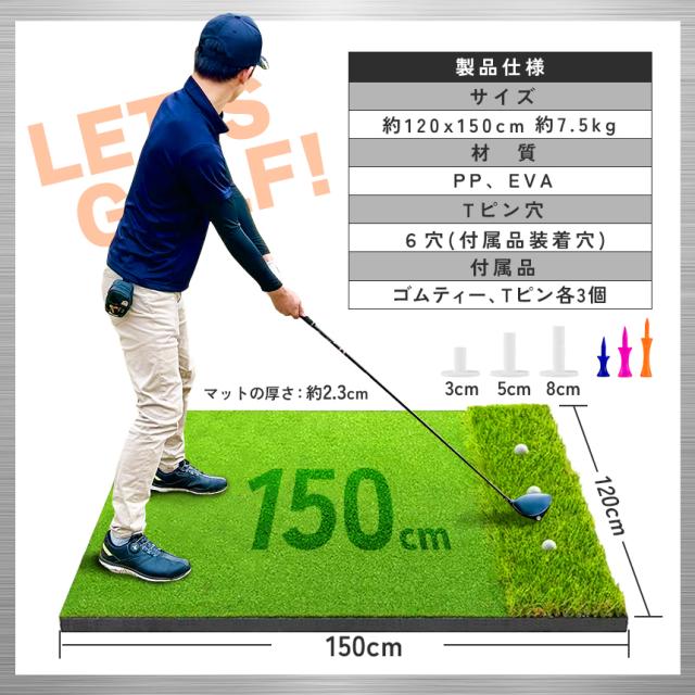 サイズは約150cm×120cm。しっかりとした面積があるため、ドライバーからアイアン、アプローチまで幅広いショットに対応。スイングフォームを安定させたい方にも最適です。